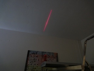 Mit einem improvisierten Lot bringe ich die Löcher in Deckung mit den Kernbohrungen im Boden
