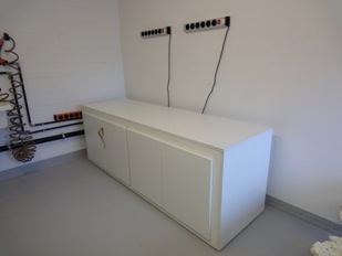 An die rechte Seitenwand kommt eine schaltbare Steckdosenleiste mit dem "rohen" Netzstrom (um die Dosierpumpe, der IKS-Aquastar und die Rücklaufpumpe zu spesen). An der linken Seitenwand ist oben eine Steckdosenleiste, welche über den Foodstop der EG3-Nachfüllpumpe geschaltet wird. An dieser Leiste hängt der Abschäumer und die untere Steckerleiste über eine Schaltuhr. An der unteren Steckerleiste sind die 3 Strömungspumpen dran, welche ich über Nach ausschalte um die Ohren meines Nachbars zu schonen.
