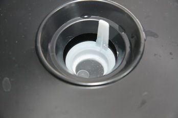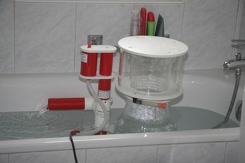 Das Wasser im Abschäumerabteil ist nur minimal gefärbt