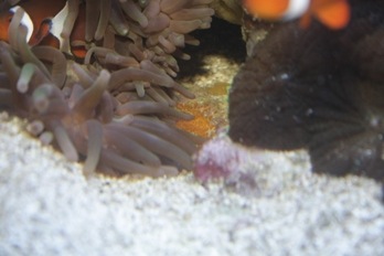 Später am Abend laichen meine Amphiprion Ocellaris ab, ob die wohl merken was ich im Sinne habe? Ich mache mich im Internet schlau zum Thema und stosse auf einen guten Artikel bei Swissaquaristik.ch. Beim Fotographieren des Geleges fällt mir dann auf, dass meine Algenfressende Grundel am Ansatz der linken Brustflosse verletzt ist. Schlägerei gehabt? Aufgescheuert? Ich vertraue auf die Selbstheilung und werde beobachten.