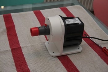 Um wenigstens nicht ganz untätig zu sein, baue ich gestern Abend temporär meine Verrohrung um (die Anschlüsse sind ja noch nicht geklebt). Ich schliesse den Zulauf mit dem Ablauf kurz um so meine Pumpe testen zu können. Bei 33% Leistung beginnt das Wasser zu fliessen, sobald der Kreislauf geschlossen ist (da Wasser auf der Ablaufseite saugt ja) kann ich die Pumpe auf 25% drosseln. Einmal habe ich kurz die Pumpe auf 35% Leistung hochgefahren aber dann begannen die unverklebten Fittinge arg zu wackeln und ich habe das Experiment vorzeitig abgebrochen.