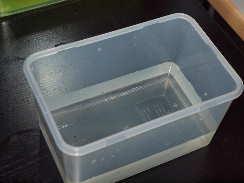 Etwa 10 Larven will ich die ersten Tage in einem Tupperwaregeschirr halten