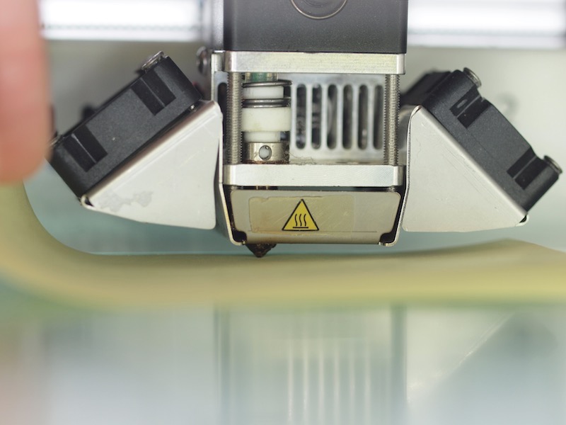 Die Nivellierung des Druckstest ist das A und O: Ein Blatt Papier (ich nehme immer Post-it-Zettel) hat ziemlich genau 0.1mm Dicke. Wenn die Düsenspitze spürbar auf dem Papier kratzt, ist es genau richtig