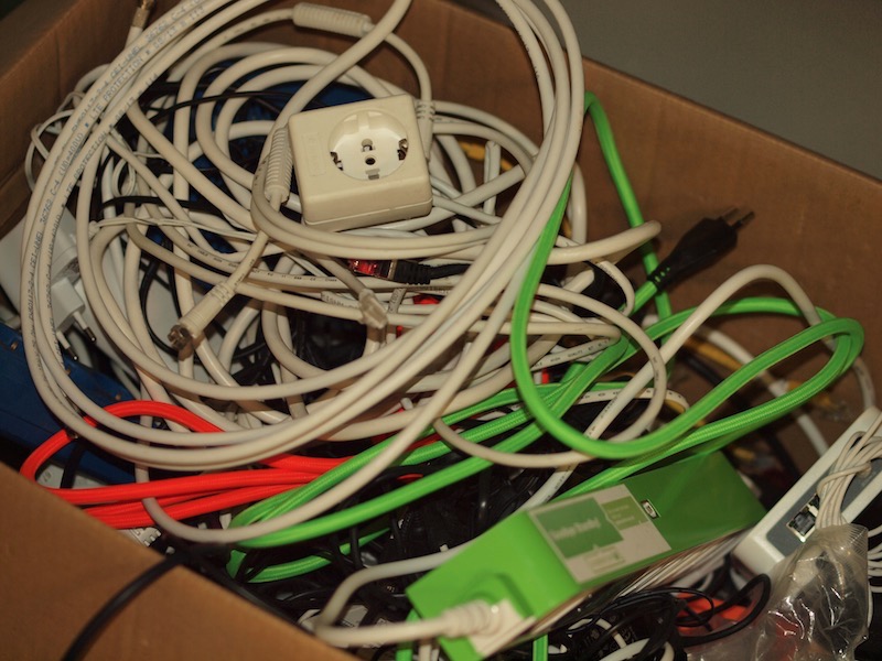 Aber hierfür hat man ja ein Adaptern in der wohlorganisierten Kabelkiste: Für den Laien mag der Inhalt dieser Kiste auf den ersten Blick chaotisch wirken, aber ich kann versichern ich finde da drin jedes Kabel in unter 2 Minuten (und nach weiteren 10 Minuten habe ich es auch aus dem Knäuel der anderen Kabel entwirrt)